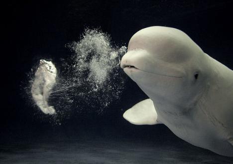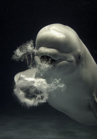 那時候這頭白鯨還無法吐出現(xiàn)在這樣圓潤如同甜甜圈般的泡泡