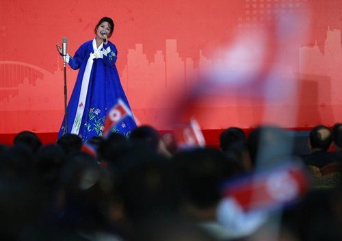 昨日,朝鮮的“金達萊”也在世博園中綻放,朝鮮平壤藝術團在世博園亞洲廣場和世博中心紅廳中上演了兩場精彩演出,為世博游客帶來歡樂。